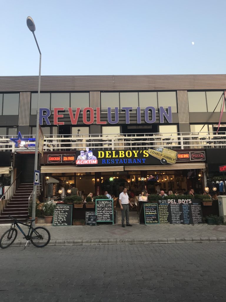 As the sun faded I started my final climb to Oludeniz. The coastal road was packed solid with cars, trucks and open topped jeeps full of sunburned tourists. The hill was the steepest of the day and I stopped to dry sweat from my eyes every few hundred meters. The oppressive heat, humidity and traffic bore down. I focused in and freewheeled through the brits abroad scheme to my temporary hotel. Past Delboys Cafe and rEVOLution club. I had made it. Time to get my foot up.